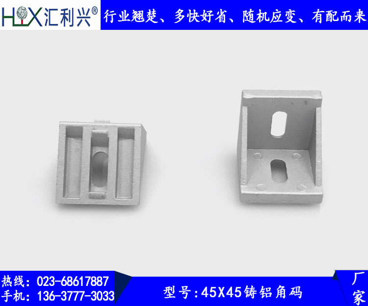 流水線(xiàn)鋁型材配件:45*45鑄鋁角碼匯利興產(chǎn)品之鋁型材連接件/角件/角碼系列,我司提供業(yè)內(nèi)所有鋁型材規(guī)格2020角碼 ,3030鋁角碼,4040角碼、4545角碼、4590角碼,4080角碼,6060角碼、8080連接件、9090角碼,100*100角碼,鋅合金角碼,鐵質(zhì)角碼,內(nèi)置連接件,任意連接件,轉(zhuǎn)向連接件,斜角連接件,角度連接件、T型螺母,T型螺栓,方形螺母,直角連接件,LNT直角連接件、DNS角槽連接件,一字連接件,滑板螺母,菱形螺母,弧形螺母,DCB系列連接件,ASB系列連接件,ASC系列連接件,EF系列鋁材連接件,F(xiàn)B鋁材腳座,鋁型材端蓋,鋁材封邊條,鋁型材裝飾件,蹄腳端板········ |