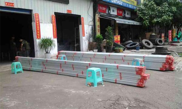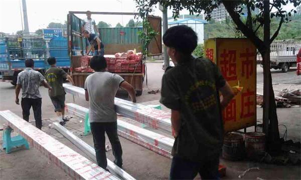 一捆捆打好包的鋁型材整齊的放置在地,等待裝車。  小伙伴們配合默契,齊心協(xié)力搬運(yùn)鋁型材。