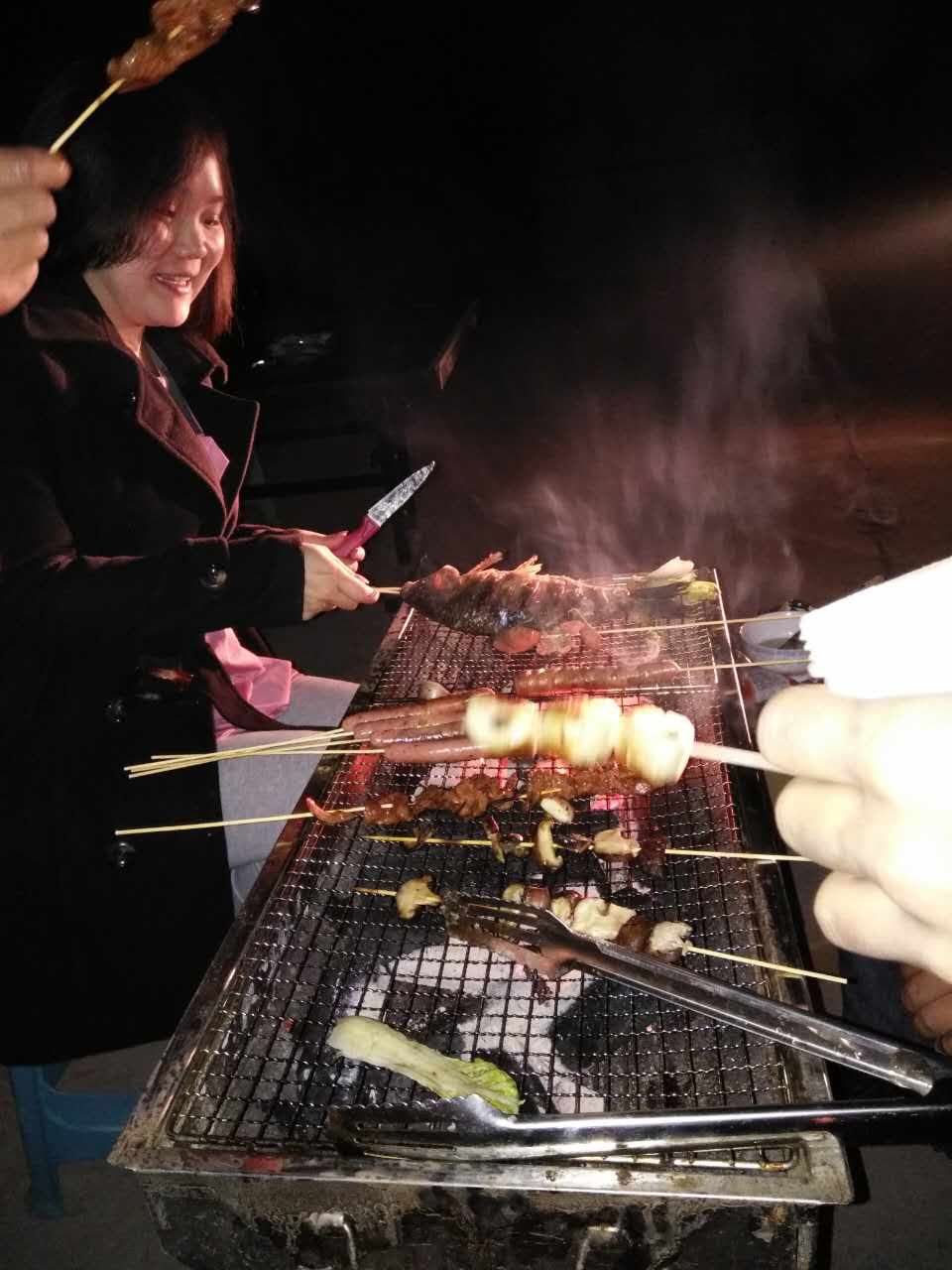 昨日在家的(匯利興)院落里,我們自主組織了燒烤活動。晚飯過后的我們(匯利興),開始了活動的準備,大家像過年似的分工合作,生火的生火、洗菜的洗菜、打燈的打燈等其畫境樂融十足、熱鬧非凡。然此刻的夜晚如富帶感情的畫兒,用星星之火點燃的火爐,用酸甜辣咸勾起的味蕾,用攜手合作帶起的歡樂;一片片紅火的燒碳,一盤盤熟香的佳肴,一個個歡笑的人兒;在沒有電的環(huán)境下,歡聲笑語、飲酒暢談。