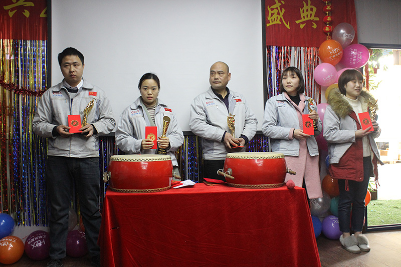 時(shí)光荏苒,歲月如梭。回顧2017年,我們無(wú)比自豪,展望2018年,我們信心百倍。新的一年,新的目標(biāo),新的征程,不忘初心、奮發(fā)圖強(qiáng)、創(chuàng)造輝煌。 會(huì)議主題:新征程、新跨越、新作為,積極向上,開(kāi)源節(jié)流,倍增業(yè)績(jī)!在2018年2月3日下午13時(shí),匯興家人齊聚在匯利興學(xué)校隆重舉行2017匯利興年度會(huì)議盛典會(huì)議主持人:石樂(lè)歡 團(tuán)結(jié)就是力量,這力量是鐵,這力量是鋼......伴隨著激情高昂的歌唱聲及匯興家人的共同心聲緩緩從竹林小道入場(chǎng)了。緊接著家人們?cè)诤飞侠酉伦约旱氖种赣?,寓意著匯興家人們堅(jiān)韌不拔,奮勇當(dāng)先,自強(qiáng)不息,團(tuán)結(jié)協(xié)作的精神品質(zhì)。 匯利興家人緩緩進(jìn)入竹林小道圖 匯利興家人緩緩進(jìn)入竹林小道圖2 俗話說(shuō)“四方進(jìn)寶、八方來(lái)財(cái)”,開(kāi)場(chǎng)由客服部四大美女帶來(lái)“抓錢(qián)舞”的精彩表演,由此整個(gè)會(huì)議正式拉開(kāi)序幕?!叭说?、孝道、商道”是匯利興一直以來(lái)遵循的職業(yè)道德,開(kāi)場(chǎng)對(duì)其進(jìn)行三鞠躬來(lái)表達(dá)我們匯興人的職業(yè)道德。用情做人、用心做事的企業(yè)文化深入人心;忠誠(chéng)團(tuán)結(jié)、勤奮進(jìn)取的團(tuán)隊(duì)精神讓我們一次又一次的面對(duì)困難而挑戰(zhàn)成功,就像我們匯利興之歌中所說(shuō)的(相信我們會(huì)創(chuàng)造奇跡),我們一起努力、我們永遠(yuǎn)珍惜,成長(zhǎng)歲月里,我們是團(tuán)結(jié)的集體,以用情做人、用心做事的精神定會(huì)創(chuàng)造奇跡、不斷前進(jìn)。 匯利興全體家人依次對(duì)企業(yè)三道“人道、孝道、商道”行三鞠躬 看著2015-2017年的工作縮影,一張張熟悉的和陌生的面孔,訴說(shuō)著曾經(jīng)我們一起戰(zhàn)斗,有過(guò)淚水,有過(guò)歡笑,能夠走到今天是我們大家共同努力的結(jié)果。不忘初心、牢記使命,回首過(guò)去展望未來(lái),公司的快速發(fā)展和進(jìn)步離不開(kāi)每個(gè)人的辛勤付出與奉獻(xiàn),相信未來(lái)我們無(wú)比輝煌。 煽情的畫(huà)面總是讓氣氛有點(diǎn)壓抑,所以激情高昂的抽獎(jiǎng)緊接著開(kāi)始了。每個(gè)人都希望自己能夠中獎(jiǎng),但獎(jiǎng)項(xiàng)有限,到底會(huì)花落誰(shuí)家呢?最開(kāi)始揭曉的是四五等獎(jiǎng)項(xiàng),在這里不得不提一下我們的籌備小組,獎(jiǎng)的名字都是用我們公司的產(chǎn)品命名的,一下子就拉近了相互之間的距離。獎(jiǎng)項(xiàng)是由隨機(jī)抽選的匯利興家人揭曉的,緊接著胡偉路總經(jīng)理頒發(fā)愛(ài)心基金和優(yōu)秀員工獎(jiǎng)。 四、五等獎(jiǎng)獲得者合影 愛(ài)心基金家人鄧筵暉(圖左)與胡偉路總經(jīng)理(圖右)合影 優(yōu)秀員工熊學(xué)斌(從左圖1)和石樂(lè)歡(圖3)與胡偉路總經(jīng)理(圖2)合影 孔子言:溫故而知新,可以為師矣,因此只有不斷總結(jié)、革故鼎新才能越走越強(qiáng),一個(gè)人如此一個(gè)團(tuán)隊(duì)如此一個(gè)企業(yè)更因如此。會(huì)上,張副總對(duì)2017年度工作作了總結(jié),首先談到2017年家人們的努力及付出、公司的發(fā)展及進(jìn)步同時(shí)也談到2017年度工作中的不足同時(shí)希望大家2018年不僅要摒棄不足還應(yīng)不斷創(chuàng)新、齊心協(xié)力、積極向上、開(kāi)源節(jié)流、定能倍增業(yè)績(jī)、再創(chuàng)奇跡。然后對(duì)2017年度個(gè)人獎(jiǎng)進(jìn)行頒發(fā)獎(jiǎng)杯(最佳進(jìn)步獎(jiǎng)、最佳成長(zhǎng)獎(jiǎng)、最佳奉獻(xiàn)獎(jiǎng)、最佳忠誠(chéng)獎(jiǎng)、最佳付出獎(jiǎng))。 從左往右最佳奉獻(xiàn)獎(jiǎng)(徐財(cái)華)、最佳忠誠(chéng)獎(jiǎng)(姜英)、最佳付出獎(jiǎng)(周榮)、最佳進(jìn)步獎(jiǎng)(何歡)、最佳成長(zhǎng)獎(jiǎng)(夏鑫玉) 此后,各部門(mén)代表作相應(yīng)年度述職(財(cái)務(wù)部獎(jiǎng)、采購(gòu)部獎(jiǎng)、客服部獎(jiǎng)、物控部獎(jiǎng))及胡總宣讀人事任命(仇春華任命為倉(cāng)庫(kù)主管助理、周榮任命為生產(chǎn)主管、蒲曾紅任命為客服部經(jīng)理)。 各部門(mén)年度述職合影圖 人事任命合影圖 然后由胡偉路總經(jīng)理授予客服部、銷(xiāo)售部、采購(gòu)部、財(cái)務(wù)部、物控部等代表授予兩把刷子,希望匯利興家人們帶著胡偉路總經(jīng)理所授予的兩把刷子盡最大的努力刷出匯利興的藍(lán)圖、刷出夢(mèng)想的藍(lán)圖。 胡偉路總經(jīng)理授予客服部、銷(xiāo)售部、采購(gòu)部、財(cái)務(wù)部、物控部等代表兩把刷子合影圖 二、三等獎(jiǎng)獲得者合影圖 隨年會(huì)時(shí)間的推移,匯利興(重慶)公司2017年度會(huì)議已逐步進(jìn)入下篇階段:會(huì)上,胡偉路總經(jīng)理表示,在2017年里通過(guò)各部門(mén)的共同努力及奮斗下逐步接近我們的目標(biāo)同時(shí)表示在整個(gè)年度中各部門(mén)配合力度有待提高、物控部及采購(gòu)部等部門(mén)工作進(jìn)度有待提高等進(jìn)一步談到2018年匯利興整體目標(biāo)及公司的發(fā)展方向力爭(zhēng)開(kāi)源節(jié)流,倍增業(yè)績(jī)!然后對(duì)最佳團(tuán)隊(duì)獎(jiǎng)、最佳銷(xiāo)售冠軍獎(jiǎng)的頒發(fā)。 最佳團(tuán)隊(duì)-銷(xiāo)售部全體人員合影圖 最佳銷(xi