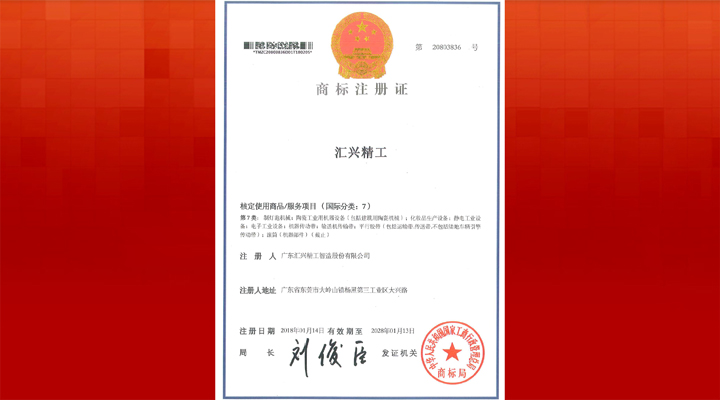 陽春三月,萬物復(fù)蘇。廣東匯興精工智造股份有限公司的喜訊就如鮮花綻放、嫩芽出頭,一個(gè)接一個(gè),讓人應(yīng)接不暇。3月13日,一份商標(biāo)注冊(cè)證書飄然而至。這為“匯興精工”的商標(biāo)注冊(cè)證書已經(jīng)是中華人民共和國國家工商行政管理總局商標(biāo)局為匯興智造簽發(fā)的第9份商標(biāo)注冊(cè)證書。 匯興智造立志成為中國領(lǐng)先的整廠自動(dòng)化系統(tǒng)解決方案提供商,一直不忘初心,不斷優(yōu)化產(chǎn)品質(zhì)量,堅(jiān)持研發(fā)攻克新技術(shù),打造開發(fā)新產(chǎn)品,加速轉(zhuǎn)化新成果。在做大做強(qiáng)的過程中,強(qiáng)烈地意識(shí)到知識(shí)產(chǎn)權(quán)和品牌建立的重要性,所以,成立了知識(shí)產(chǎn)權(quán)部門,投入大量人力、財(cái)力來保護(hù)自主創(chuàng)新、知識(shí)產(chǎn)權(quán)和品牌構(gòu)建。 商標(biāo)注冊(cè),為匯興智造樹立了品牌、建立了口碑。在每一個(gè)匯興人心中都有一個(gè)愿望,那就是打造一個(gè)“百年老店”?!皠?chuàng)于手 精于工 智于器 匠于心 品于行”是匯興智造奉行的工匠精神,匯興人在匯興工匠精神的影響下,勤修內(nèi)功、精益求精地培育著匯興人心中的“百年老店”。 “十年磨一劍”,匯興智造以提升品質(zhì)為根本,下大力氣做真正的好產(chǎn)品,由產(chǎn)品制造走向了產(chǎn)品智造,將向精品制造進(jìn)發(fā),提高品牌的含金量,做出 “匯興百年老店”的金字招牌。(轉(zhuǎn)載匯興智造http://www.huixinggroup.com)