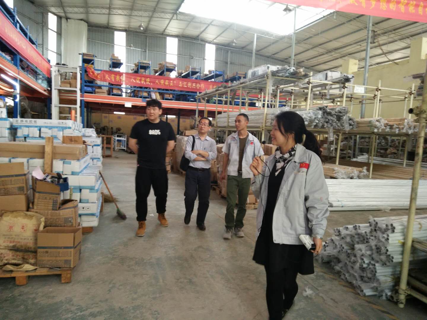 知之者不如好知者。賓客的初次拜訪,十分好奇我司企業(yè)文化和材料的種類,更想深入的了解及感受我司的文化氛圍。并由文化大使小敏一一進(jìn)行解說及帶領(lǐng)參觀了型材庫區(qū)及加工區(qū)、滾筒生產(chǎn)、加工一體流程、全倉儲系統(tǒng)配件區(qū),并引導(dǎo)客人參觀了我司匯興學(xué)校內(nèi)的文化物件及材料樣品區(qū),向客人解說了我司企業(yè)文化三道:人道、孝道、商道的寓意(人道:即是感恩自己,也是警醒自己;孝道:百善孝為先;商道:即是感恩我們的客戶),邀請了客人在“喜上眉梢、鴻運當(dāng)頭”錦上添花、大紅大紫。