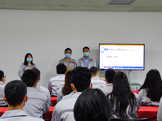 會(huì)議第一項(xiàng)議程,企業(yè)文化的展示。全體匯興人整肅衣冠對(duì)匯興人倍加推崇的“三道文化”(孝道、商道、人道)鄭重地鞠躬,莊嚴(yán)宣誓企業(yè)愿景:“成為全球領(lǐng)先的智能自動(dòng)化產(chǎn)業(yè)鏈集成服務(wù)商”,企業(yè)使命:做受尊敬的好人,造受尊敬的產(chǎn)品,辦受尊敬的企業(yè),建受尊敬的平臺(tái),企業(yè)精神“用情做人、用心做事”,團(tuán)隊(duì)精神“忠誠團(tuán)結(jié)、勤奮進(jìn)取”,工匠精神:創(chuàng)于手、精于工、智于器、匠于心、品于行等。隨后由胡總經(jīng)理和張副總擊士氣鼓,士氣比武器更重要,現(xiàn)場氣氛熱烈、振奮人心。 會(huì)議第二項(xiàng)議程,新員工入職歡迎儀式。由常務(wù)副總徐總親自為新入職員工頒發(fā)紀(jì)念品。為公司注入新鮮血液,為團(tuán)隊(duì)帶來新的生機(jī)和活力。