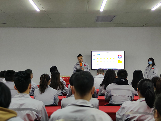 會(huì)議第三項(xiàng)議程,季度之星嘉獎(jiǎng)儀式。本季度之星“工程部王顯章和物控部陳曉敏”,他們用一言一行在各自的工作崗位上做著表率;他們不辭辛苦,積極向上,工作出色,深得大家的認(rèn)可,同時(shí)也感謝他們的奉獻(xiàn)與堅(jiān)持。也正因?yàn)橛羞@么一批堅(jiān)持奉獻(xiàn)、恪盡職守、團(tuán)結(jié)奮進(jìn)的匯興人,才得以讓匯利興這個(gè)大家庭一直散發(fā)著正能量,引領(lǐng)行業(yè)市場。 會(huì)議第四季度,胡偉路總經(jīng)理作2020年第一季度總結(jié)及未來目標(biāo)展望。胡總經(jīng)理首先指出第一季度工作中存在的不足,進(jìn)而勉勵(lì)全體員工“一切行動(dòng)聽指揮,步調(diào)一致才能取得最終勝利”;其二,談到疫情當(dāng)下,企業(yè)也不容易,請全體員工努力工作、珍惜工作并且不要輕易放棄,永葆積極向上之心;其三,受疫情影響,所帶來的經(jīng)濟(jì)危機(jī),要求全員具備強(qiáng)烈的危機(jī)意識(shí)和逆勢而上的思維;其四,未來匯利興將打造“會(huì)干、愿意干、搶著干的精英團(tuán)隊(duì)”及年度優(yōu)秀團(tuán)隊(duì)及個(gè)人嘉獎(jiǎng)模式;其五,匯利興一站式商城將為實(shí)現(xiàn)標(biāo)準(zhǔn)化、定制化、個(gè)性化、高端化的配件品牌而努力前行。最后,胡總勉勵(lì)大家“每個(gè)人都是公司前進(jìn)的助推劑,不是公司的絆腳石”,希望全員擰成一股繩,一路向前、努力奮進(jìn),順利完成年度目標(biāo)。
