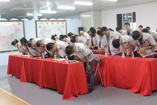 有大家才能有小家,升國旗唱國歌。全體員工精神抖擻,一起唱響國歌-五星紅旗迎風(fēng)飄揚(yáng).....從今走向繁榮富強(qiáng),現(xiàn)場聲音嘹亮、士氣如虹,著實(shí)展現(xiàn)了祖國兒女、新時(shí)代接班人的精神面貌。 會(huì)議開始,全體員工整肅衣冠,對倍加推崇的孝道、商道、人道鄭重鞠躬,莊嚴(yán)宣誓企業(yè)愿景:“成為全球領(lǐng)先的智能自動(dòng)化產(chǎn)業(yè)鏈集成服務(wù)商”,企業(yè)使命:做受尊敬的好人,造受尊敬的產(chǎn)品,辦受尊敬的企業(yè),建受尊敬的平臺(tái),企業(yè)精神“用情做人、用心做事”,團(tuán)隊(duì)精神“忠誠團(tuán)結(jié)、勤奮進(jìn)取”,工匠精神:創(chuàng)于手、精于工、智于器、匠于心、品于行等。
