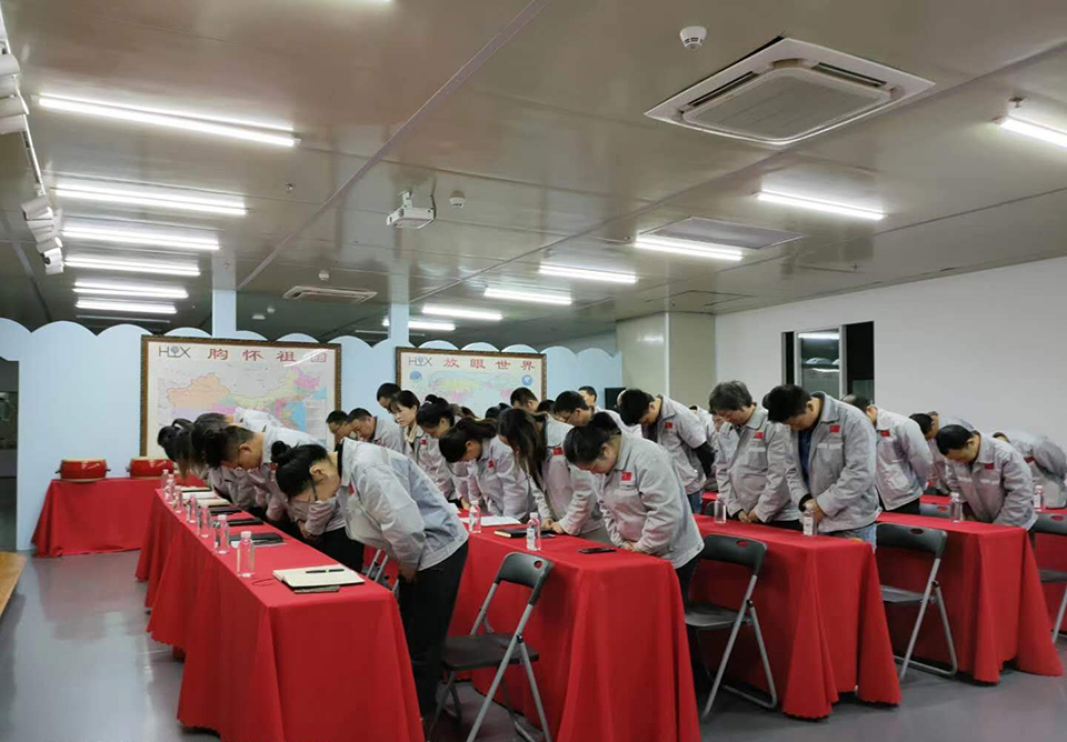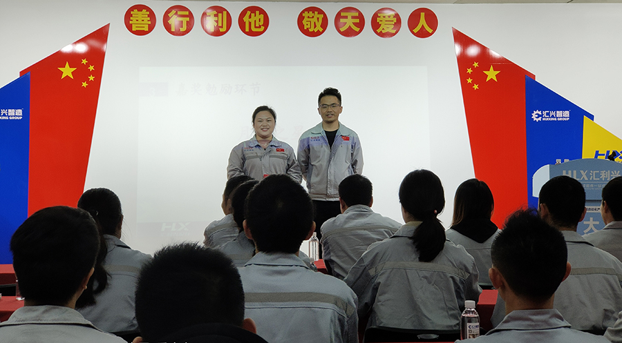 2020年10月17日13點(diǎn)45分,匯利興西南工廠全體員工在匯利興學(xué)校召開9月月度會議,由事務(wù)中心主管陳香草主持。 隨后二位女精英擊響士氣鼓,鼓舞士氣,鼓舞著戰(zhàn)友們奮勇前進(jìn),并以這種以評促進(jìn)、你追我趕的“激勵文化”,潛移默化融于員工的日常工作中,同時也鞭策著員工們不斷爭先創(chuàng)優(yōu),推動企業(yè)發(fā)展的內(nèi)生動力,從而形成“我來干、搶著干、努力干”的工作作風(fēng)。現(xiàn)場鼓聲震天,士氣如虹。 會議第一項議程,企業(yè)文化展示。全體匯興人整肅衣冠對匯興人倍加推崇的“三道文化”(孝道、商道、人道)鄭重地鞠躬,莊嚴(yán)宣誓企業(yè)愿景:“成為行業(yè)優(yōu)秀的智能自動化產(chǎn)業(yè)鏈集成服務(wù)商”,企業(yè)使命:做受尊敬的好人,造受尊敬的產(chǎn)品,辦受尊敬的企業(yè),建受尊敬的平臺,企業(yè)精神“用情做人、用心做事”,團(tuán)隊精神“忠誠團(tuán)結(jié)、勤奮進(jìn)取”,工匠精神:創(chuàng)于手、精于工、智于器、匠于心、品于行,行為準(zhǔn)則:口中有德、目中有人、手中有技、心中有愛、行中有善,職業(yè)準(zhǔn)則:對工作熱臉、對同事笑臉、對錯誤紅臉、對浪費(fèi)黑臉、對榮譽(yù)爭臉。