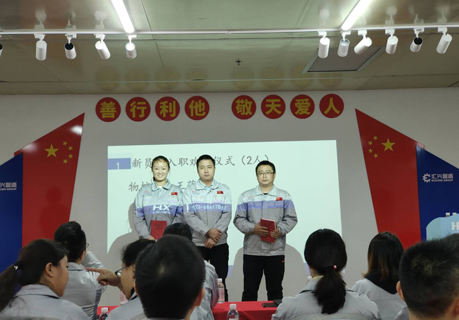 會議第二項議程,新員工入職歡迎儀式。企業(yè)的發(fā)展注定離不開新鮮血液的注入,新的活力的輸入,由徐總親自為新入員工頒發(fā)紀(jì)念品及新員工代表講話。
