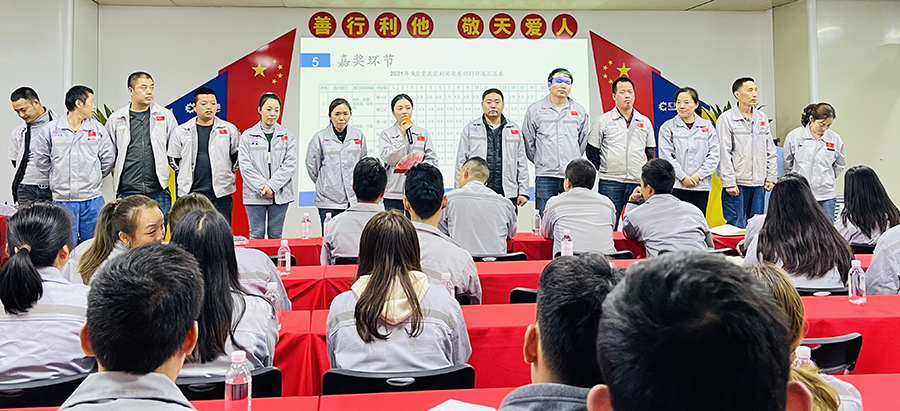 10月20日18點(diǎn)45分,匯利興西南工廠全體員工在匯利興學(xué)校召開9月月度會(huì)議,會(huì)議總結(jié)上月項(xiàng)目發(fā)展情況,規(guī)劃部署下月生產(chǎn)計(jì)劃,進(jìn)一步推進(jìn)公司戰(zhàn)略實(shí)施,由行政部主持。 會(huì)議前,由二位核心高管擊響士氣鼓,鼓舞士氣,凝心聚力,鼓舞著戰(zhàn)友們奮勇前進(jìn)和堅(jiān)決打勝仗的決心,并以這種以評(píng)促進(jìn)、你追我趕的“激勵(lì)文化”,潛移默化融于員工的日常工作中。 宣讀企業(yè)文化,向文化三道孝道、商道、人道鄭重鞠躬,并對本月新入員工進(jìn)行歡迎儀式。