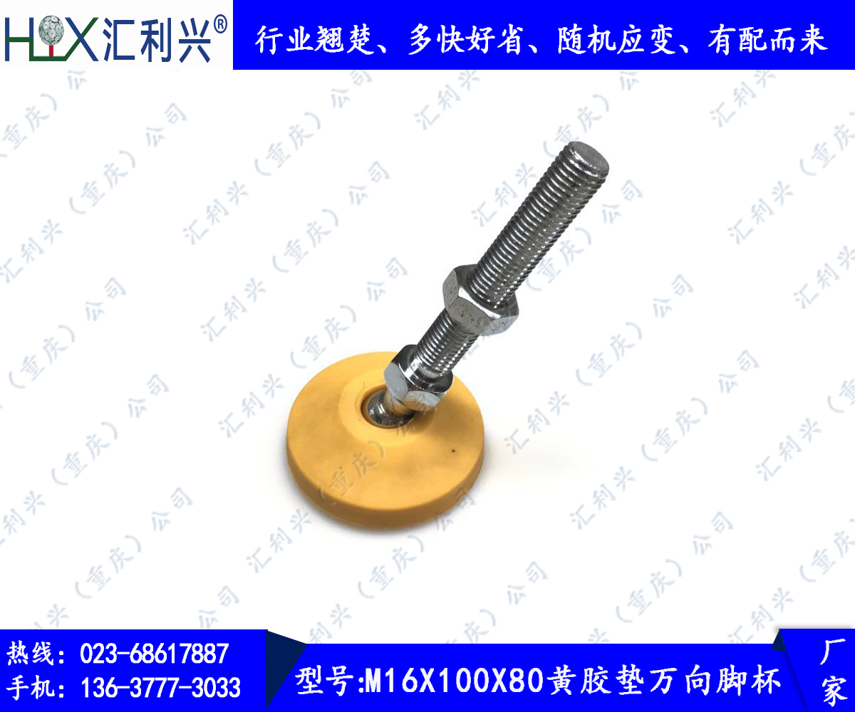 流水線鋁型材配件:M16X100X80黃膠墊萬向腳杯